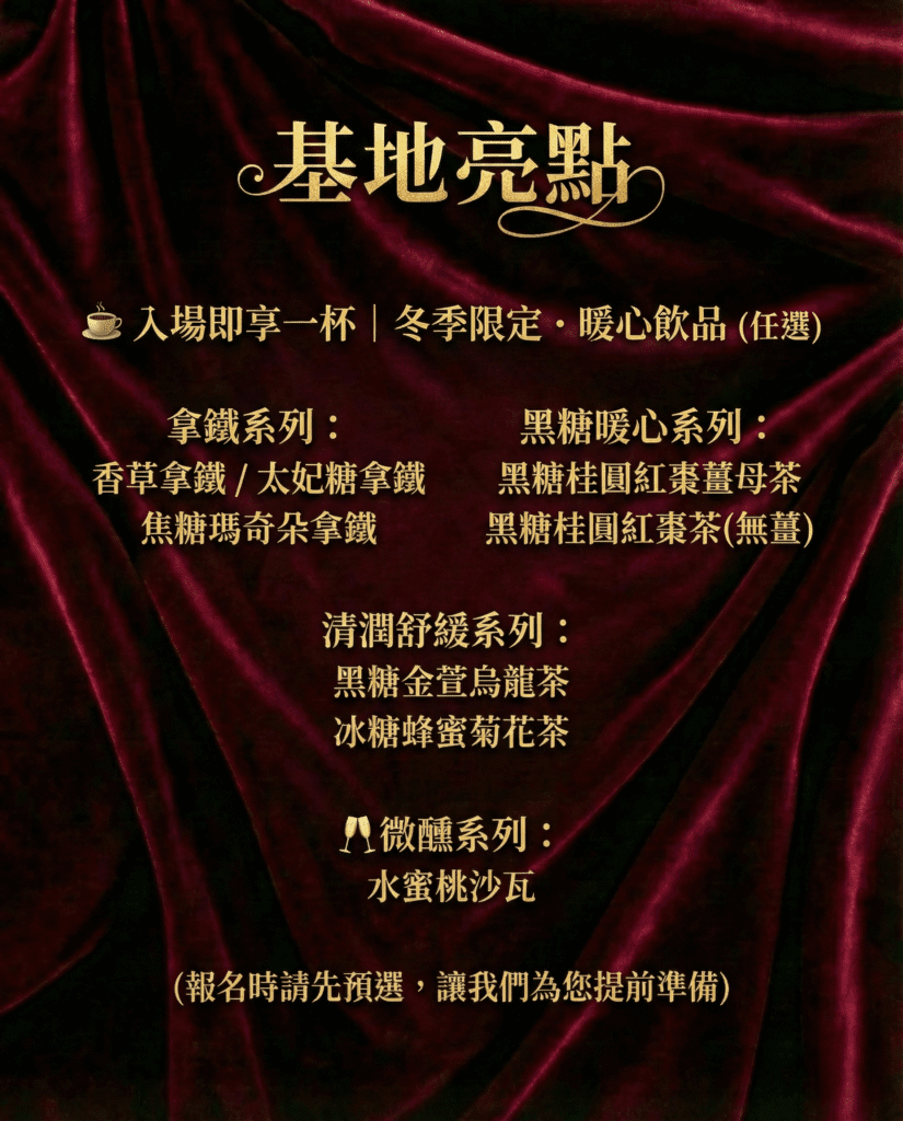☕ 冬季限定・暖心飲品:入場即享一杯 (任選)