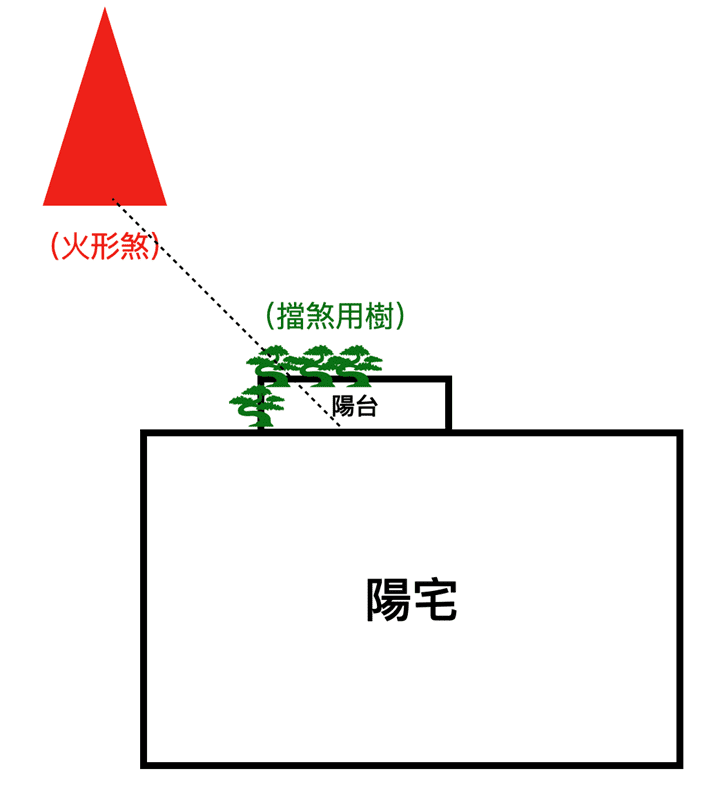 擋煞時,應將植物種植於正對形煞的位置,目標是站在收氣口(如陽台、一樓大門)看不到該形煞: