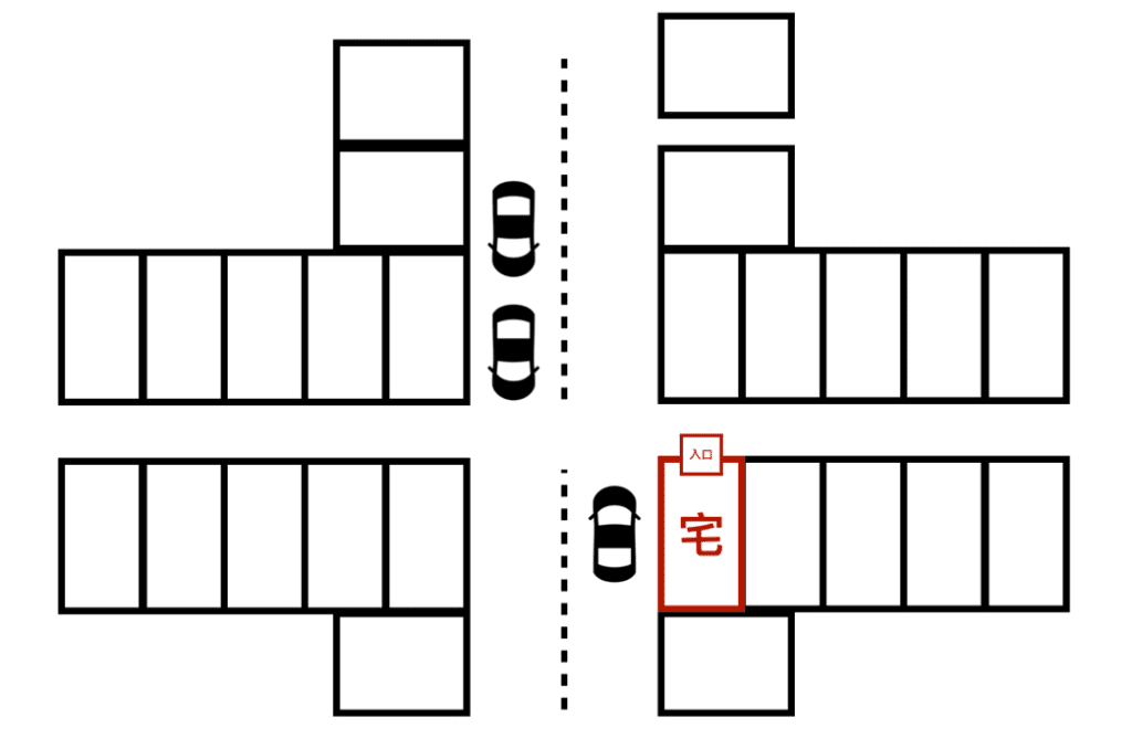 回到剛才的例子,朝巷子的那面是「動」(有門,有人進出);朝馬路的那邊是「空曠」,可能也較為「明亮」。若是筆者來定的話,比較有可能定朝馬路的那邊是咖啡廳的朝向,朝巷子那邊變成白虎方。