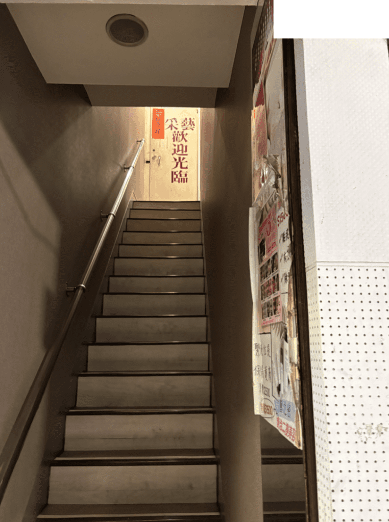 一些老舊公寓的住宅、工作室,會出現開門直接面對向下樓梯的情況,此時即犯捲簾煞,如下圖: