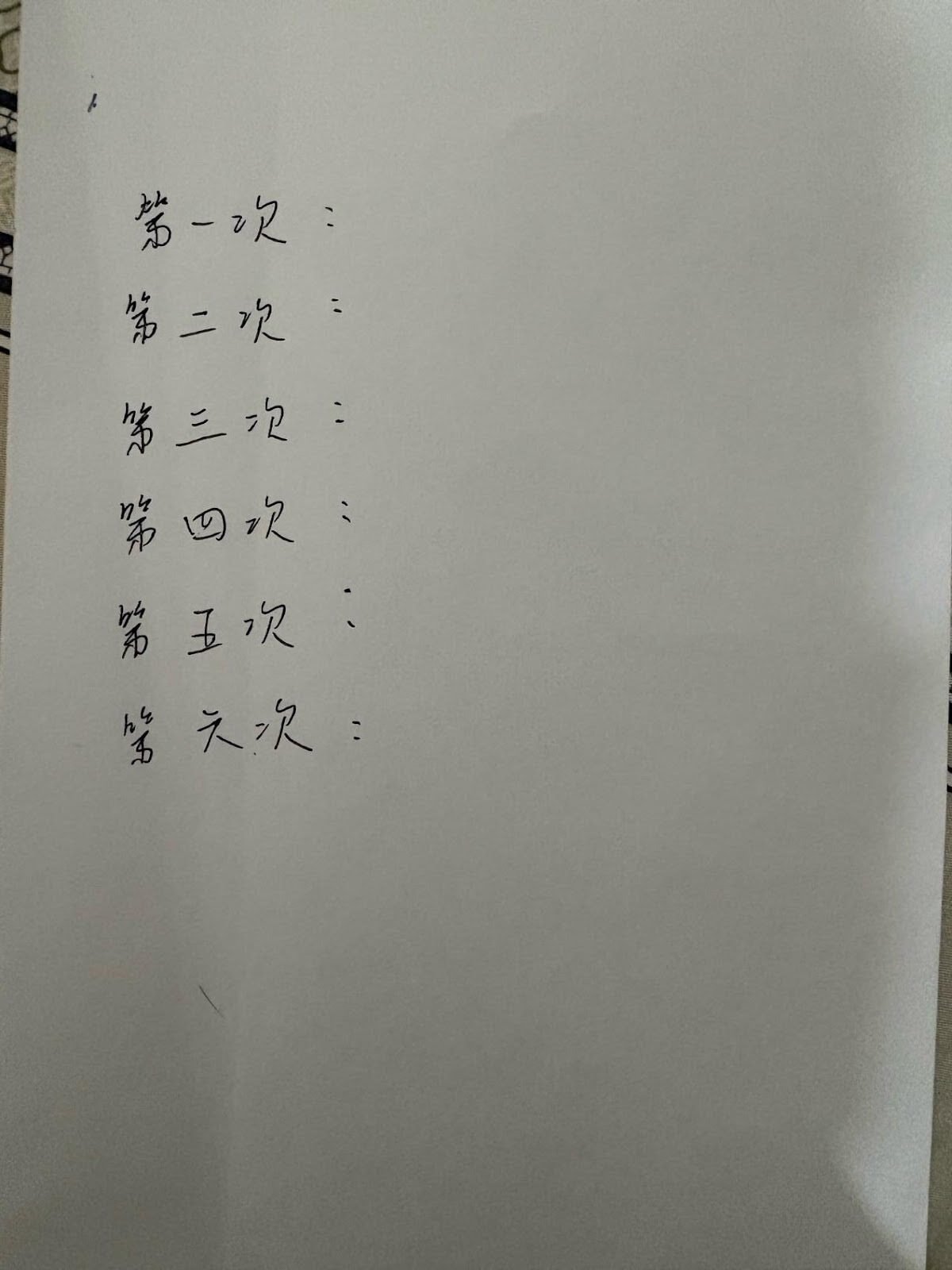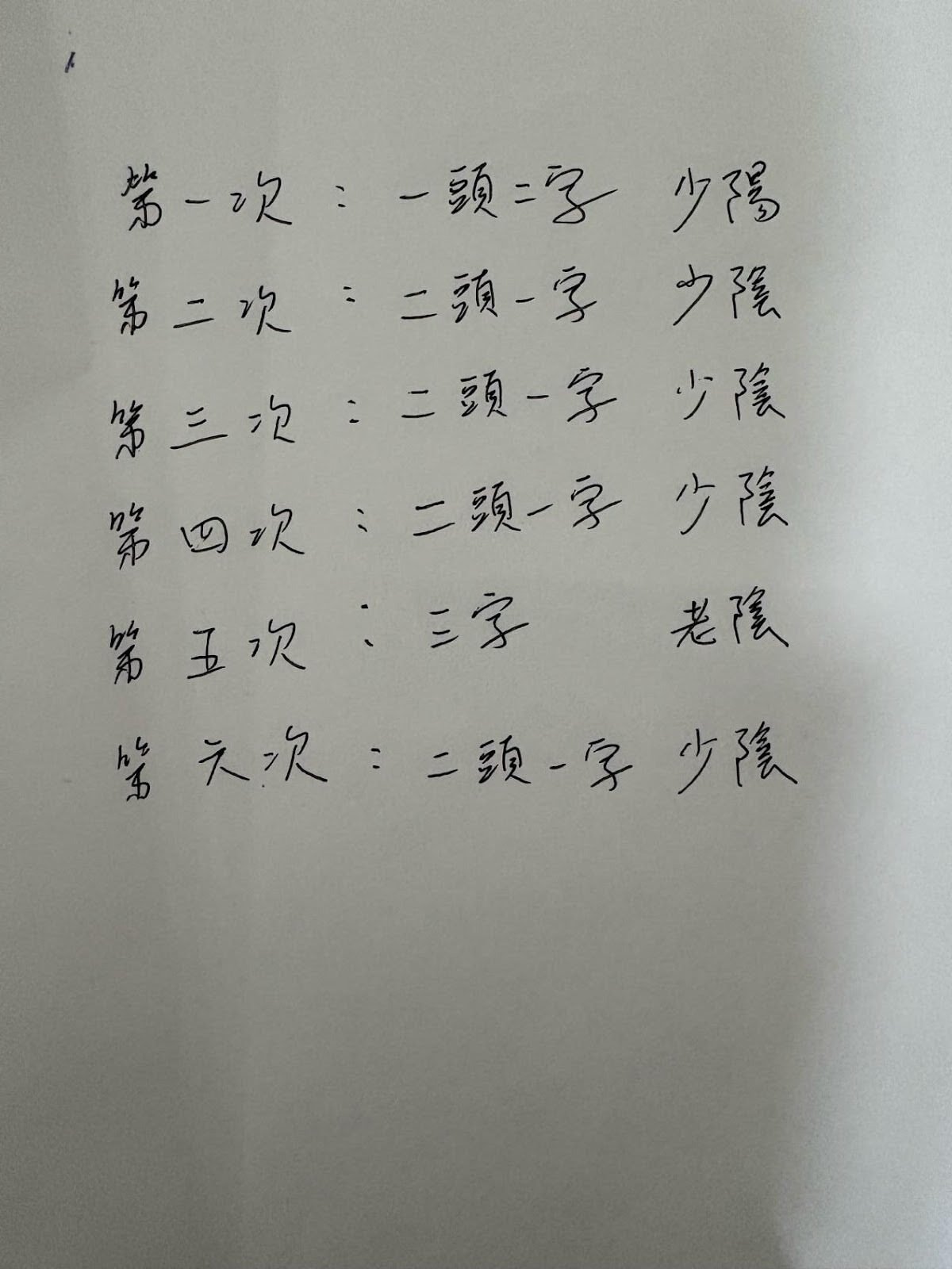 可以先準備三個銅板和一張白紙,像我這樣在白紙上寫上第一次~第六次,作為等等紀錄的格式: