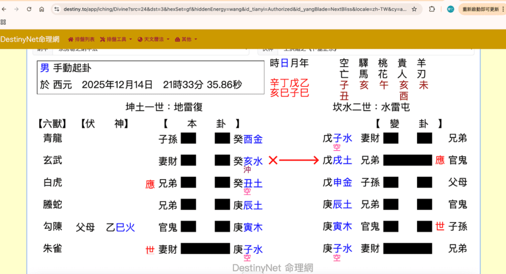到了這一部,你手上應該要有類似這樣的起卦資訊:
